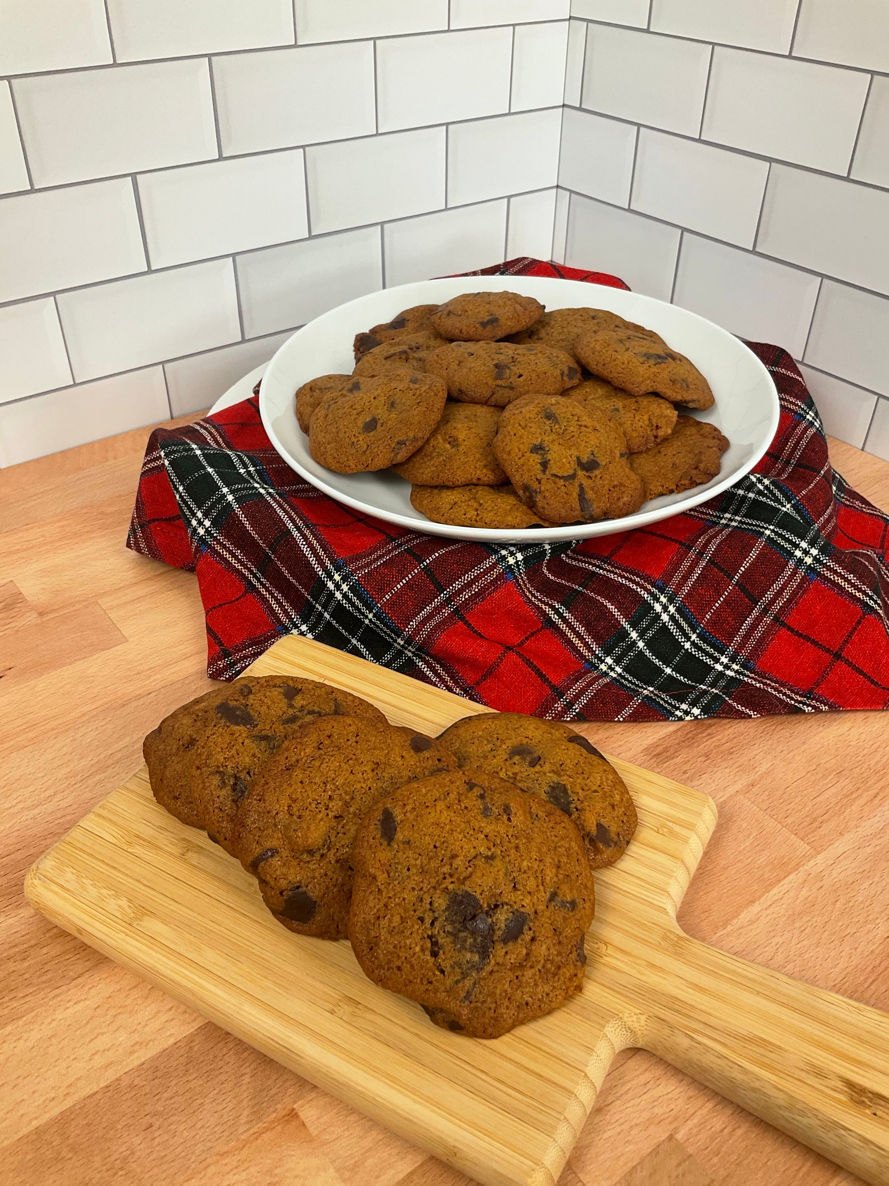 They smell amazing, hold up well after baking, and I’m really happy with the combination of the flavor of butter and dark chocolate and almost caramel undertones in these.